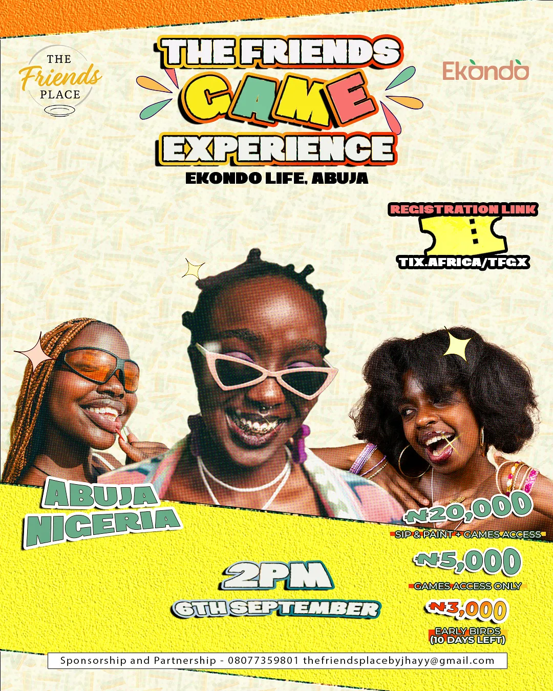 Strengthen your bond, test your knowledge, and create memories at The Friends Game Experience — the ultimate interactive hangout for squads that love fun, laughter, and a little competition. From hilarious challenges to thought-provoking questions, this experience is designed to reveal just how well you really know your friends. Expect games, drinks, music, and unforgettable vibes that turn ordinary friendships into extraordinary connections. Whether you come as a duo, trio, or full crew, it’s all about fun, laughter, and bragging rights. Ticket from N3,000.