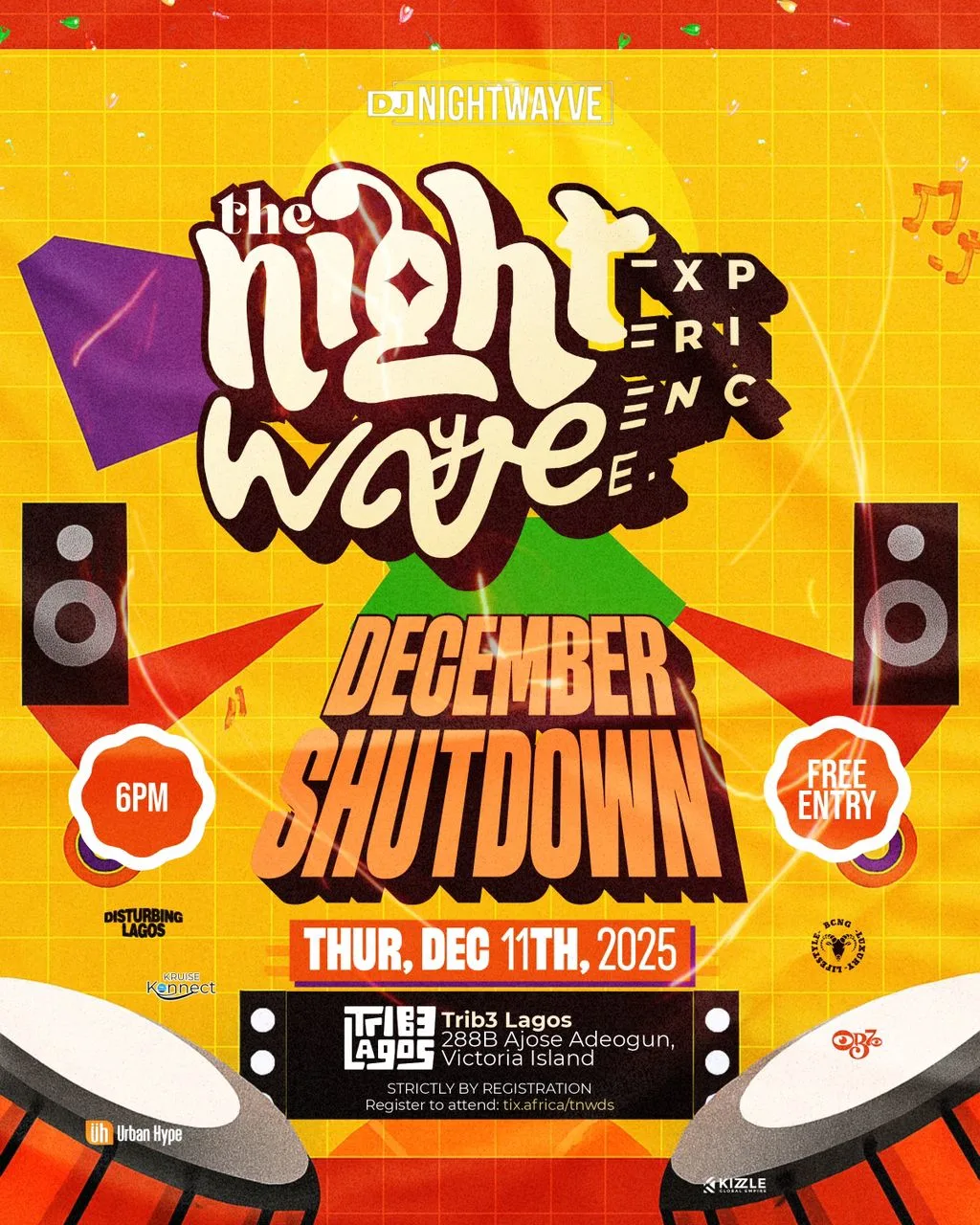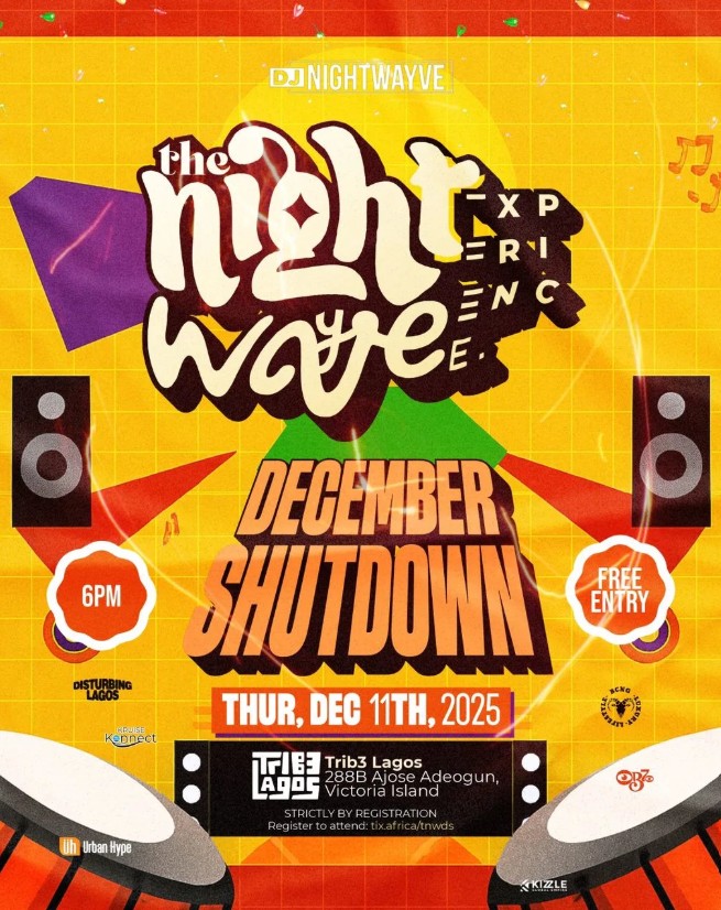Dive into the ultimate nightlife takeover at The Night Wayve Experience: December Shutdown — a high-voltage fusion of music, culture, and unforgettable energy. This edition delivers a full-blown party wave designed to shut the city down with back-to-back performances, DJs spinning crowd-shaking sets, and a vibrant atmosphere that keeps you moving till sunrise. Whether you’re here to dance, connect, or just catch the December frenzy, this is where the real Detty December magic happens. Come ready for lights, rhythm, and non-stop excitement as we ride the wave into the new year.