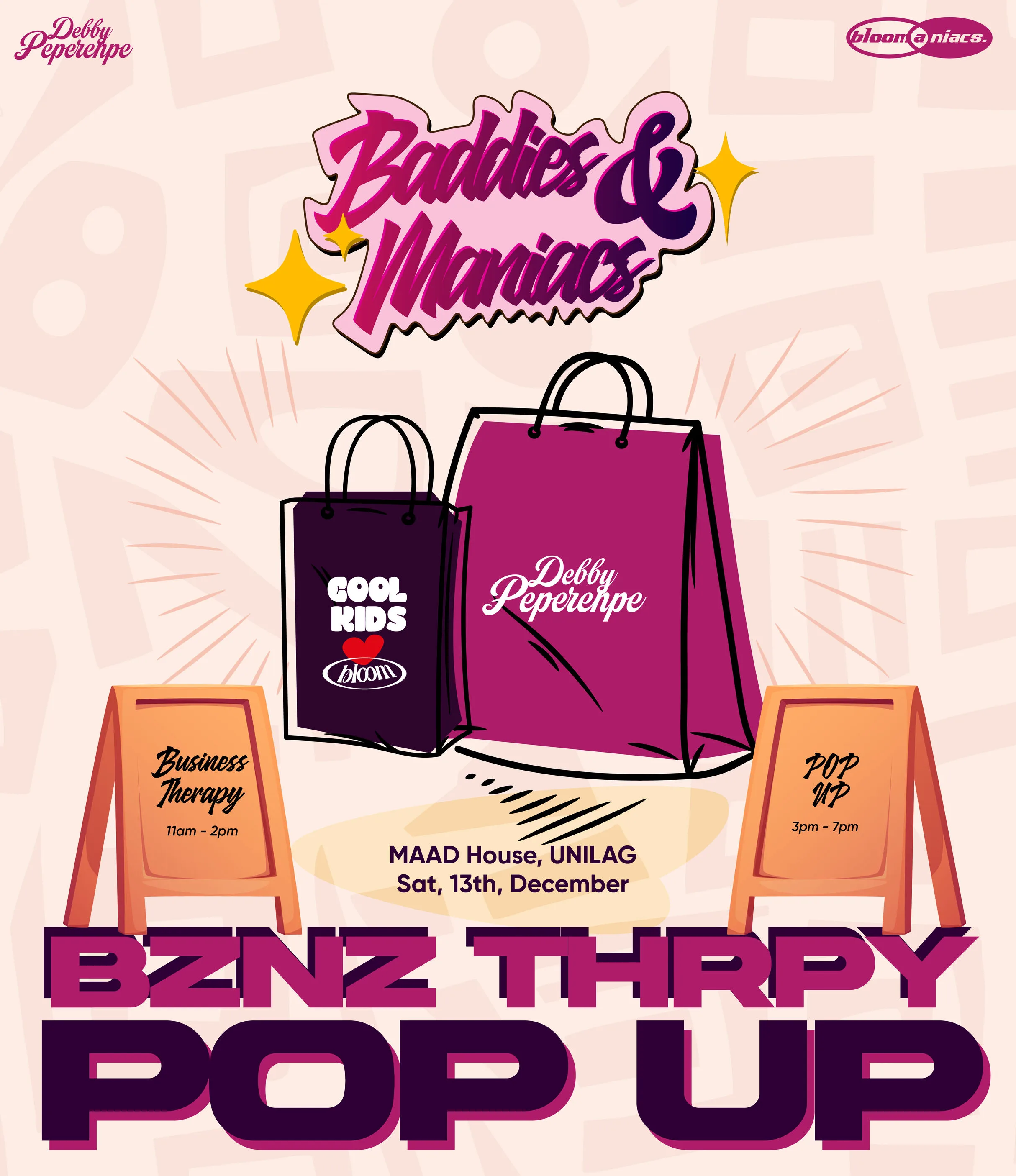 Baddies & Maniacs: BZNZ ThrpyPop Up is the ultimate fusion of lifestyle, fashion, and self-care vibes. Step into a space where bold energy meets creativity, featuring exclusive pop-up experiences, wellness sessions, and interactive activities designed to inspire and elevate. Enjoy live music, curated visuals, and engaging experiences that cater to baddies, maniacs, and culture enthusiasts alike. Perfect for fashion lovers, socialites, and content creators, this event promises unforgettable moments, networking opportunities, and vibes that leave a lasting impression.